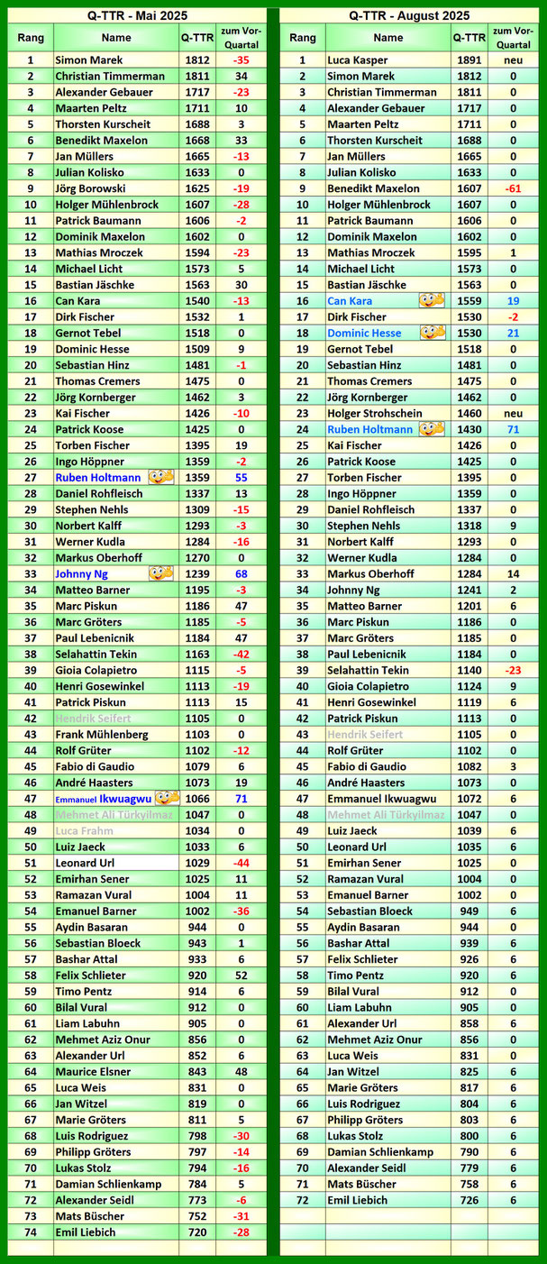 Rang | Spieler | Q-TTR |